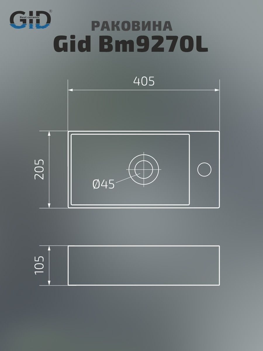 Раковина Gid Bm9270L 62201L подвесная черная матовая 40.5x20.5x10.5 купить