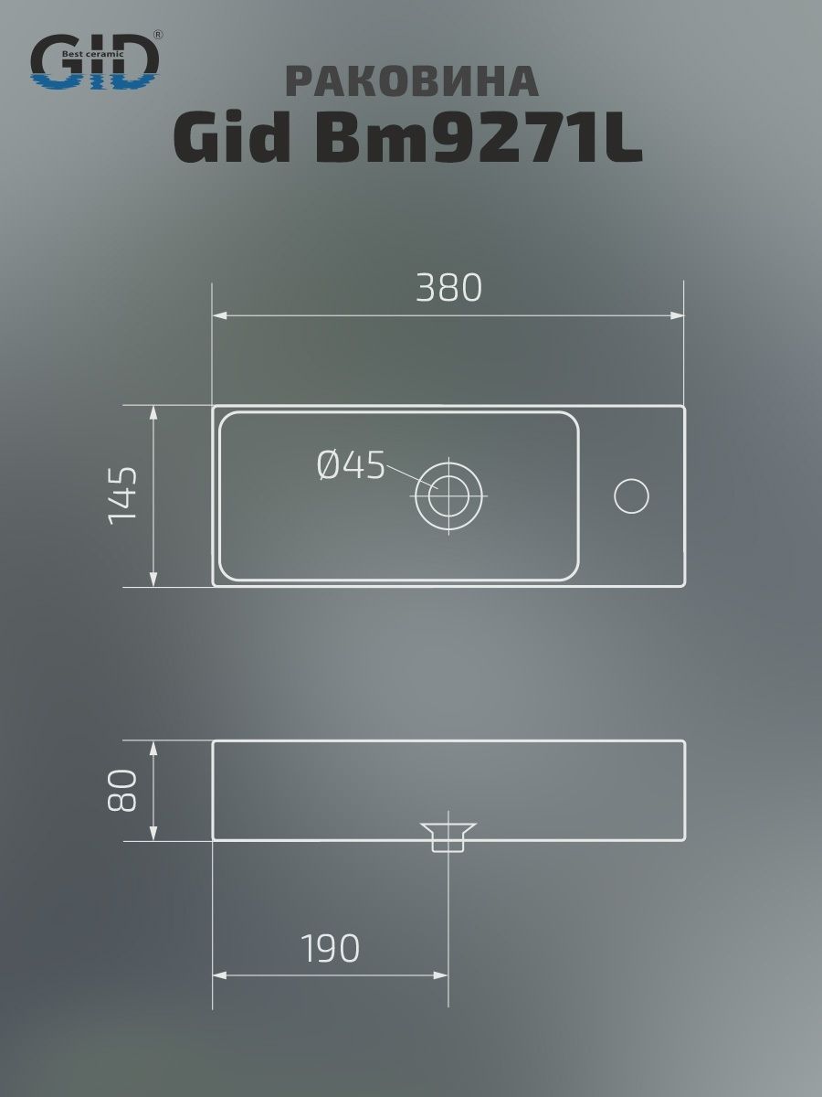 Раковина Gid Bm9271L 62202L подвесная черная матовая 38.0x14.5x8 купить
