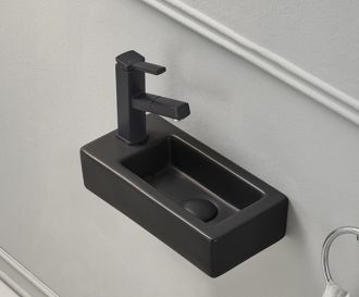 Suspendido - коллекция подвесных раковин, созданных с вниманием к каждой детали. Испанское мастерство и сертификация по европейским нормам обеспечивают их надежность. Стильная подвесная раковина GiD Bm9272R, выполненная из высококачественной керамики в матовом черном цвете, которое подчеркивает современный и изысканный дизайн. Чаша с правой стороны от смесителя делает раковину универсальным решением для различных планировок ванной комнаты. Это особенно удобно при адаптации к ограниченному пространству или особенностям размещения мебели и сантехники. Подвесной способ монтажа экономит пространство и придает ванной комнате легкость и комфорт в использовании.