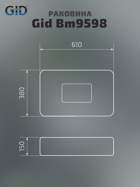 Раковина Gid Bm9598 53365 накладная черная матовая 61x38x15 купить