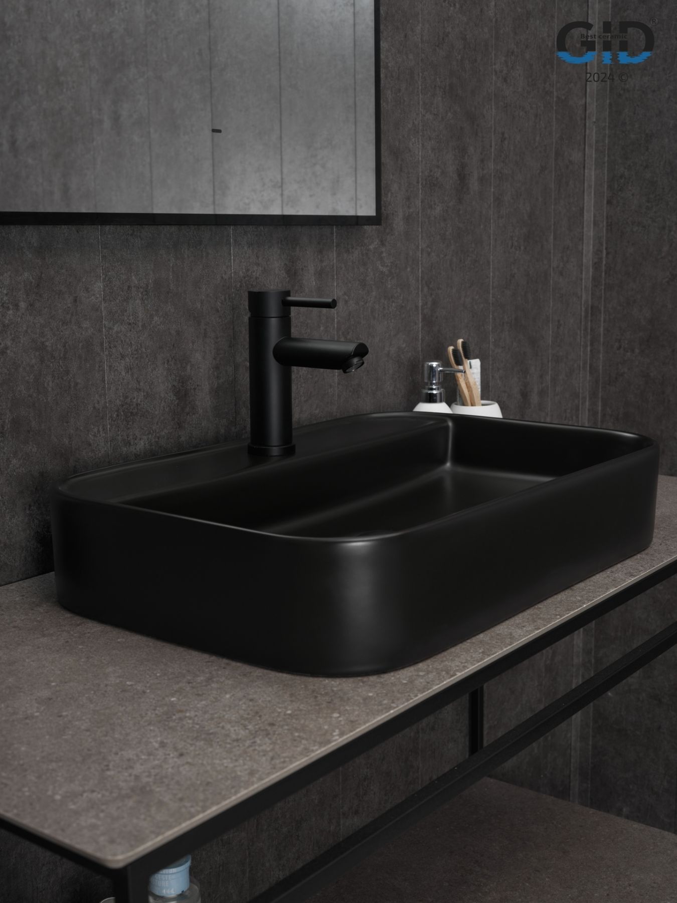 Раковина Gid Bm9660 53376 накладная черная матовая 60x40x11