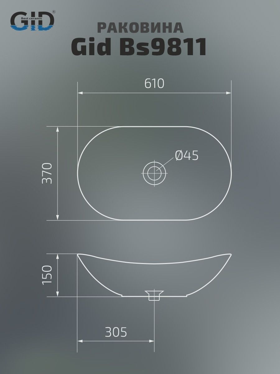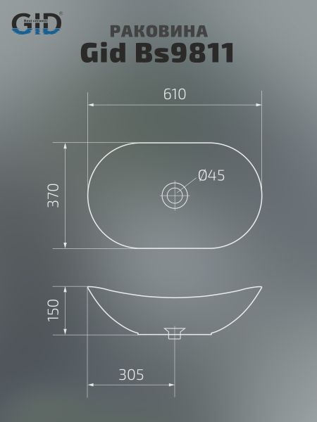 Раковина Gid Bs9811 54467 накладная под камень глянцевый 61x37x15 купить
