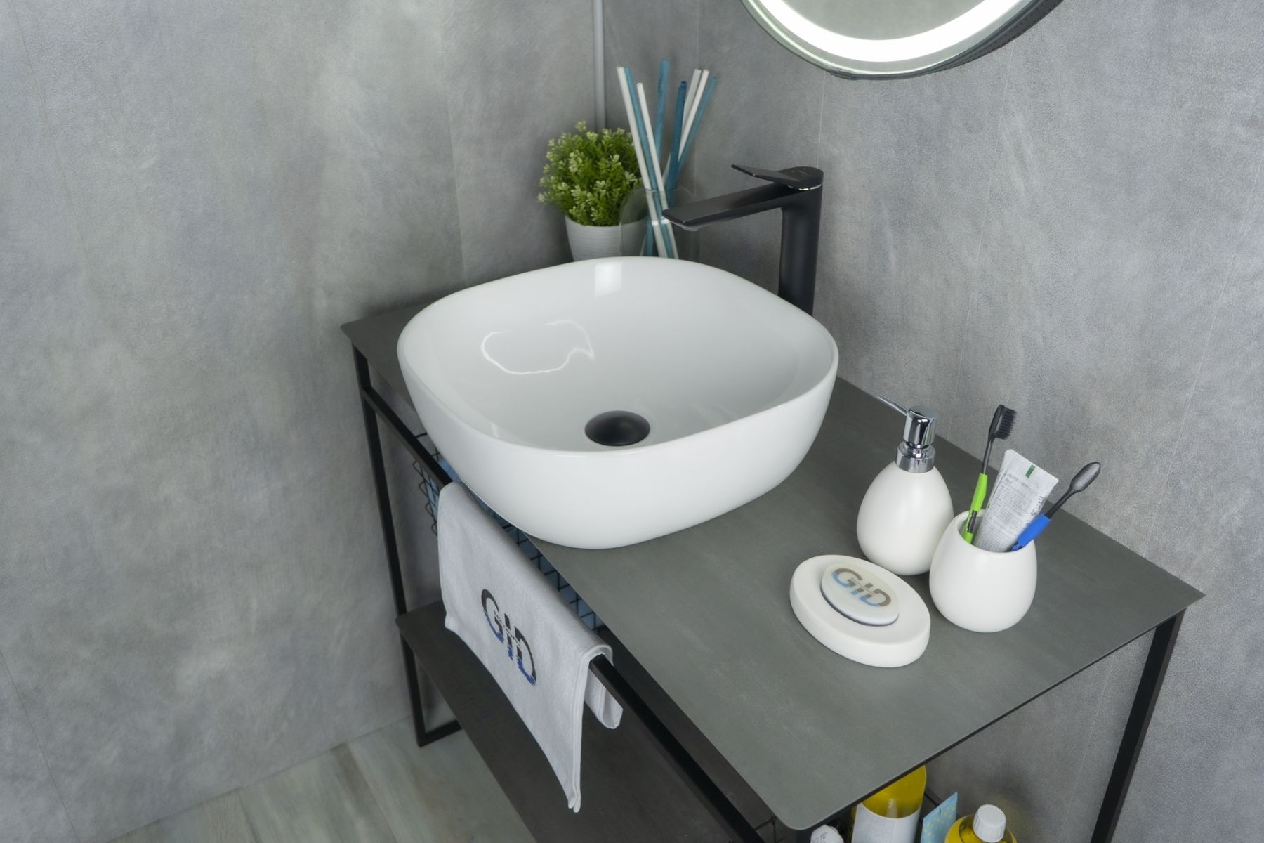 Серия Geometrico с прямоугольной формой: стиль и практичность с испанским качеством и европейскими стандартами. Накладная раковина GiD D1301 без отверстия под смеситель, изготовлена из мелкопористой керамики в белом глянцевом цвете. Гладкое стекловидное покрытие позволяет раковине быть устойчивой к загрязнениям. Квадратная форма и компактные размеры обеспечивают комфортное использование и легкую установку.