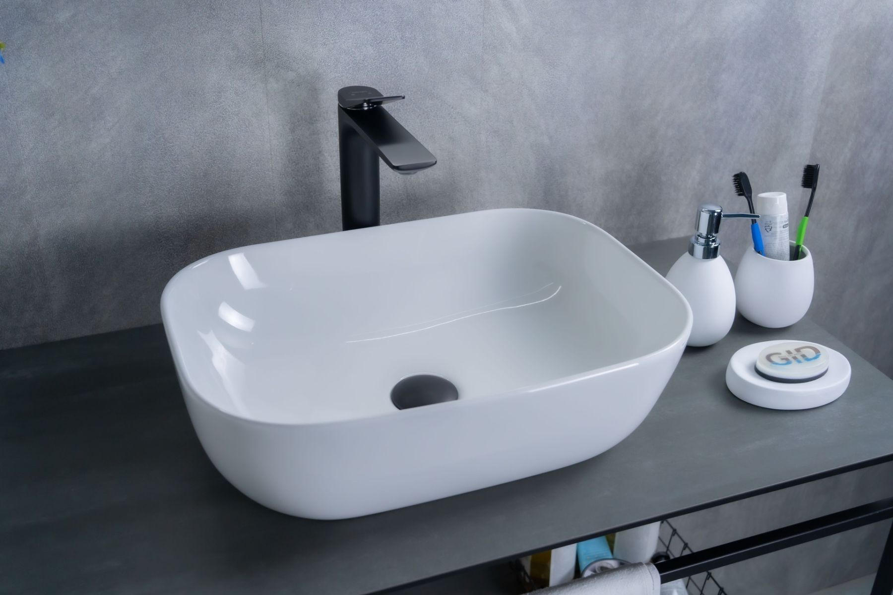 Серия Geometrico с прямоугольной формой: стиль и практичность с испанским качеством и европейскими стандартами. Накладная раковина GiD D1333 без отверстия под смеситель, изготовлена из мелкопористой керамики в белом глянцевом цвете. Гладкое стекловидное покрытие позволяет раковине быть устойчивой к загрязнениям. Прямоугольная форма и компактные размеры обеспечивают комфортное использование и легкую установку.