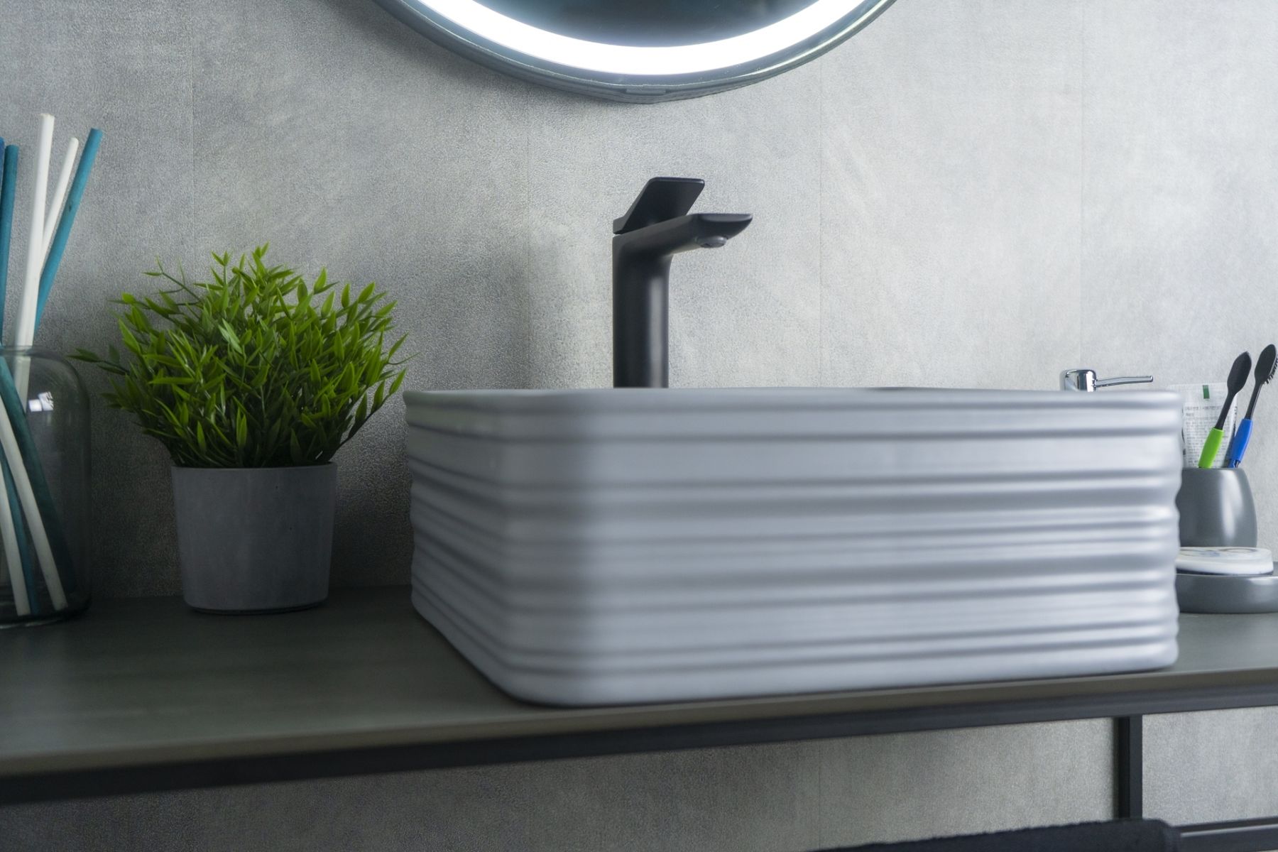 Серия Geometrico с прямоугольной формой: стиль и практичность с испанским качеством и европейскими стандартами. Раковина накладная GiD Gm965 — уникальная модель в элегантном сером цвете с матовым покрытием, созданная для яркого и современного интерьера. Её прямоугольная форма гармонично дополняет пространство, создавая акцентный элемент в ванной комнате. Мелкопористая керамика отличает раковину долговечностью, устойчивостью к загрязнениям и простотой в уходе. Благодаря отсутствию отверстия под смеситель раковина позволяет реализовать различные дизайнерские решения по размещению смесителя. Накладной монтаж обеспечивает лёгкость установки и сохраняет максимум пространства на столешнице.