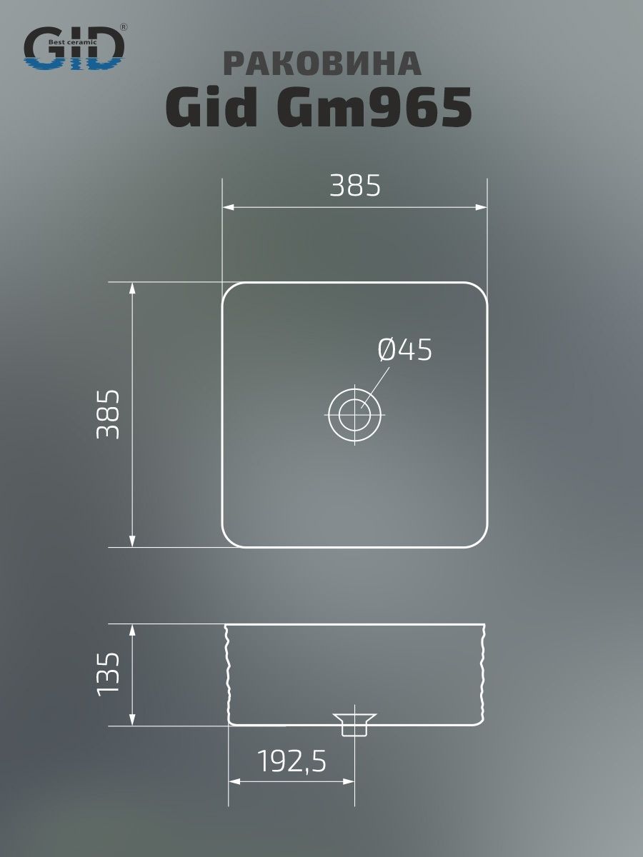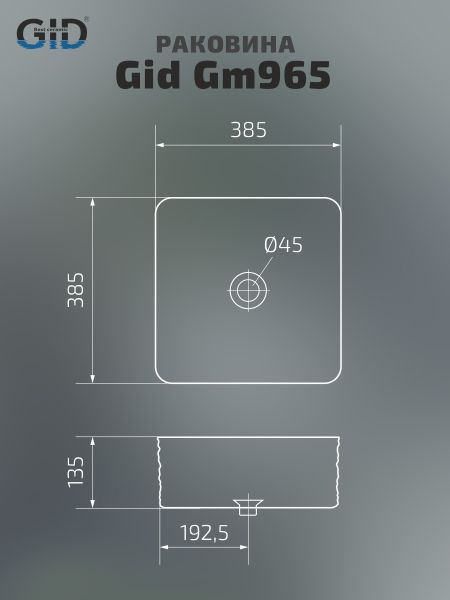 Раковина Gid Gm965 53338 накладная серая матовая 38.5x38.5x13.5 купить