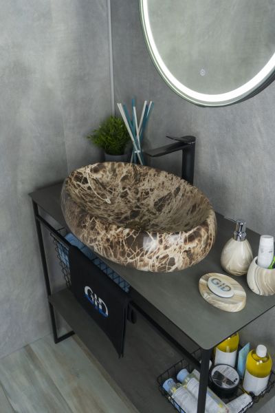 Серия Lago овальной формы — это испанское качество, соответствующее современным европейским требованиям. Раковина накладная GiD Mnc168 — стильная и современная модель, изготовленная из высококачественной керамики с глянцевой поверхностью, создающей эффект натурального камня. Её овальная форма и минималистичный дизайн идеально подходят для ванных комнат в любом стиле, от классического до современного. Модель предназначена для накладной установки на столешницу, что позволяет подчеркнуть изысканность интерьера. Отсутствие отверстия под смеситель позволяет выбрать любую модель настенного или встроенного смесителя.