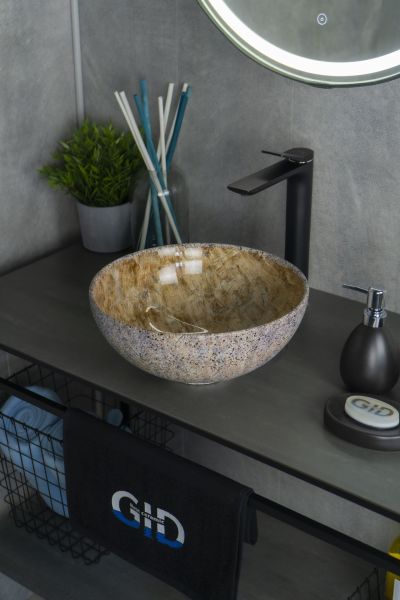Раковины серии Esfera с круглой чашей — это эталон европейских стандартов и испанского мастерства. Раковина накладная GID Mnc489 — это стильная модель, изготовленная из высококачественной керамики. Она имеет круглую форму, что делает её практичным решением для современных ванных комнат. Дизайн раковины имитирует глянцевую поверхность натурального камня, придавая интерьеру элегантность и утончённость. Раковина устанавливается накладным способом на столешницу, что подчёркивает её современный стиль. Благодаря отсутствию отверстия под смеситель раковина позволяет реализовать различные дизайнерские решения по размещению смесителя. Раковина предназначена для бытового использования и гармонично впишется в любой интерьер ванной комнаты.