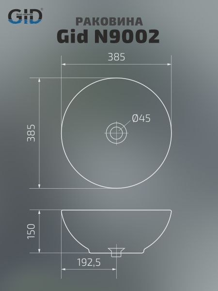 Раковина Gid N9002 51102 накладная белая 38.5x38.5x15 купить