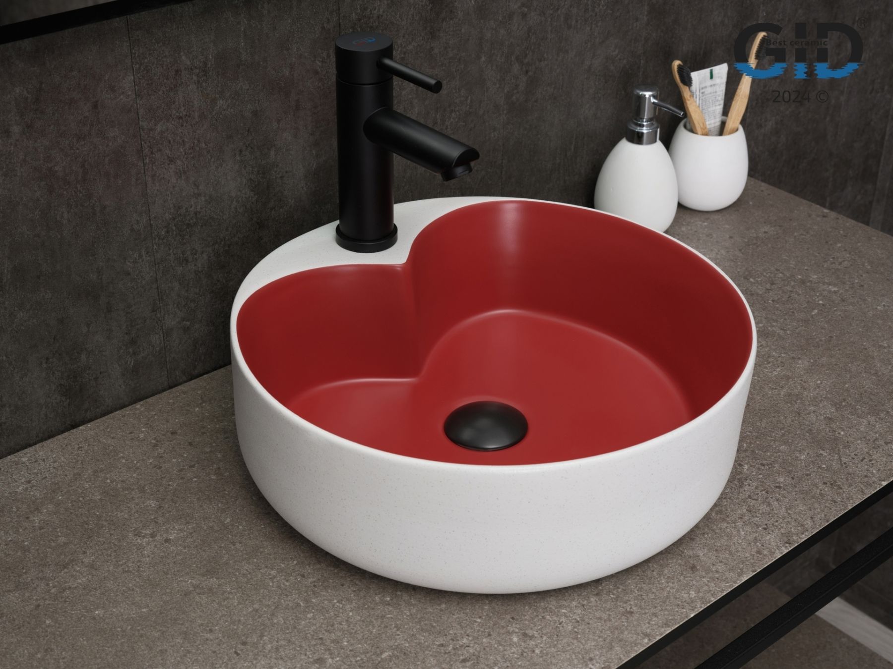 Раковина Gid N9013LS 52237 накладная красная матовая / белый графит 40x40x13