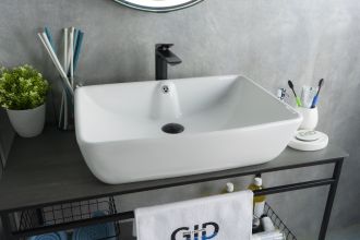 Серия Geometrico с прямоугольной формой: стиль и практичность с испанским качеством и европейскими стандартами. Накладная раковина GiD N9121 — сочетание элегантного дизайна и практичности для вашей ванной комнаты. Изготовлена из мелкопористой керамики с белым глянцевым покрытием, она придаст интерьеру свежесть и утонченность. Прямоугольная форма обеспечивает оптимальное пространство для комфортного использования. Отсутствие отверстия под смеситель подчеркивает минималистичный стиль, а накладной способ монтажа на столешницу облегчает установку и позволяет создать современный облик ванной комнаты.
