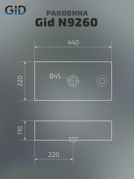 Раковина Gid N9260 61123 подвесная белая 44x22x11 купить