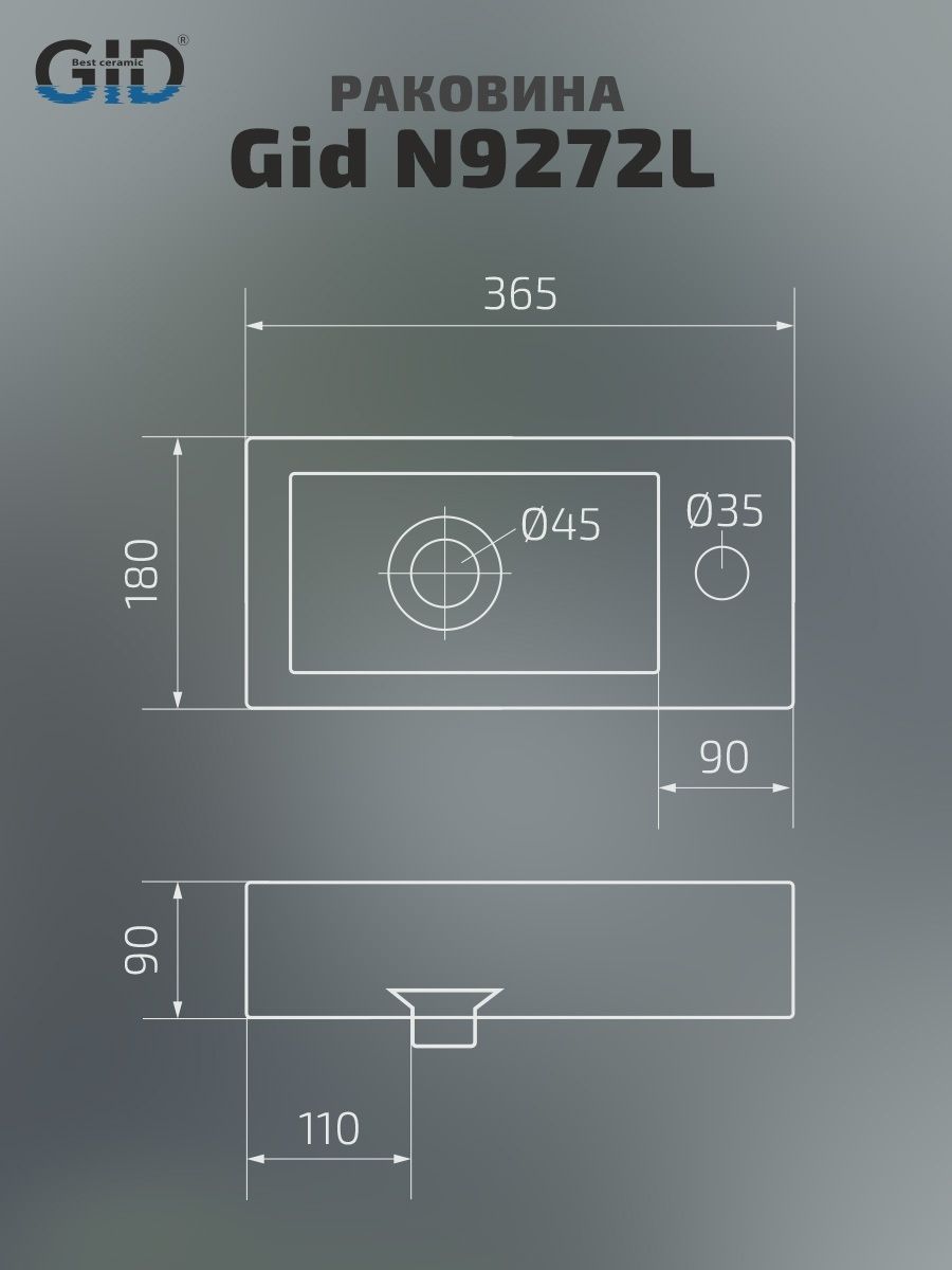 Раковина Gid N9272L 61105L подвесная белая 36.5x18x9 купить