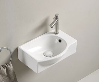 Suspendido - коллекция подвесных раковин, созданных с вниманием к каждой детали. Испанское мастерство и сертификация по европейским нормам обеспечивают их надежность. Стильная подвесная раковина GiD N9276L с расположением чаши слева от смесителя позволяет сделать правильный выбор в независимости от места установки. Раковина изготовлена из высококачественной керамики с гладким белым покрытием, которое придает ей современный и минималистичный вид. Благодаря удобному отверстию для смесителя и встроенному переливу она обеспечивает надежную эксплуатацию, предотвращая перелив воды. Подвесной монтаж позволяет сэкономить место и визуально облегчить пространство, подчеркивая современный стиль ванной комнаты. Эта раковина идеально впишется в интерьер, где ценится сочетание функциональности и легкости.
