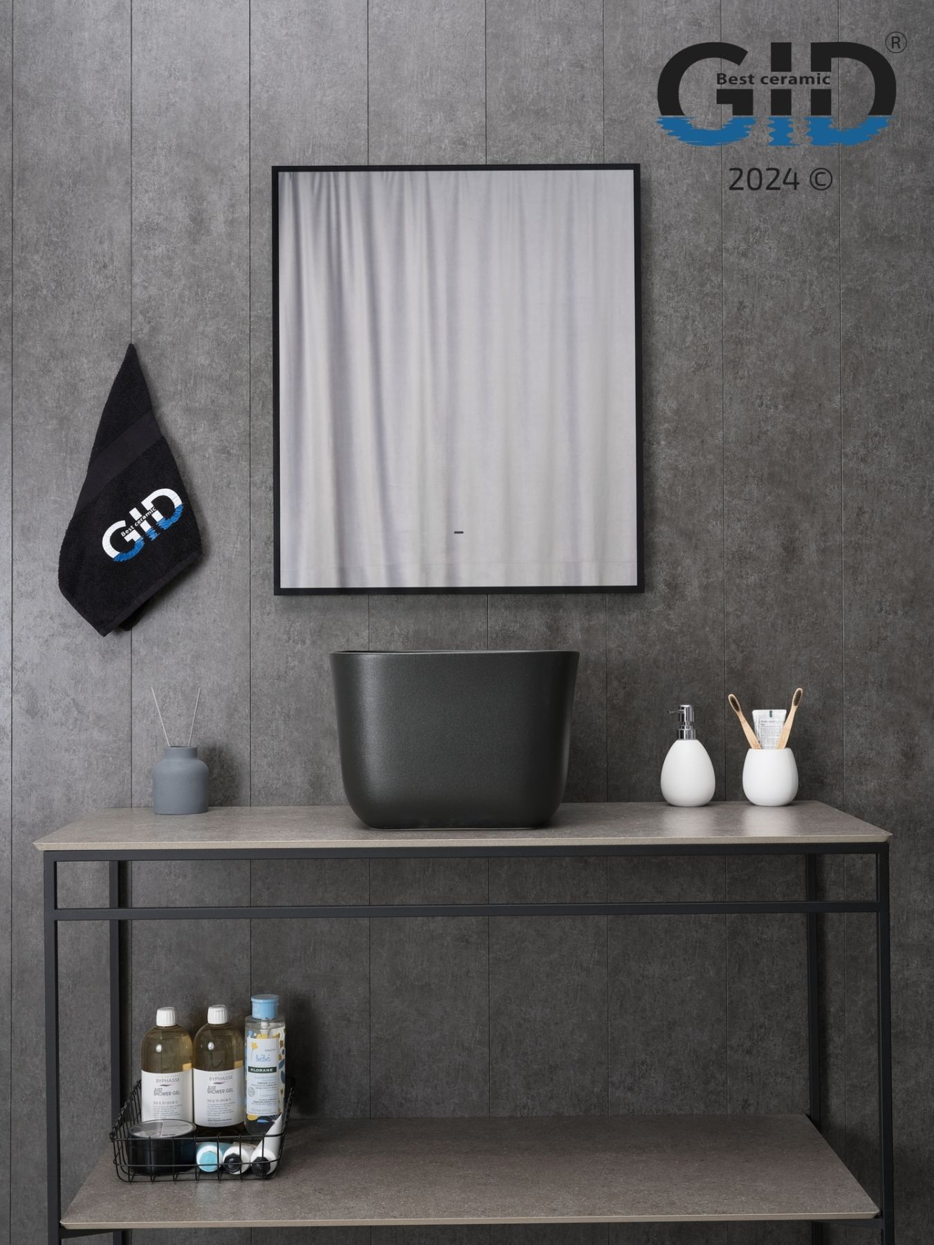 Раковина Gid N9301bg 53356 накладная черная графит 36x36x25.5