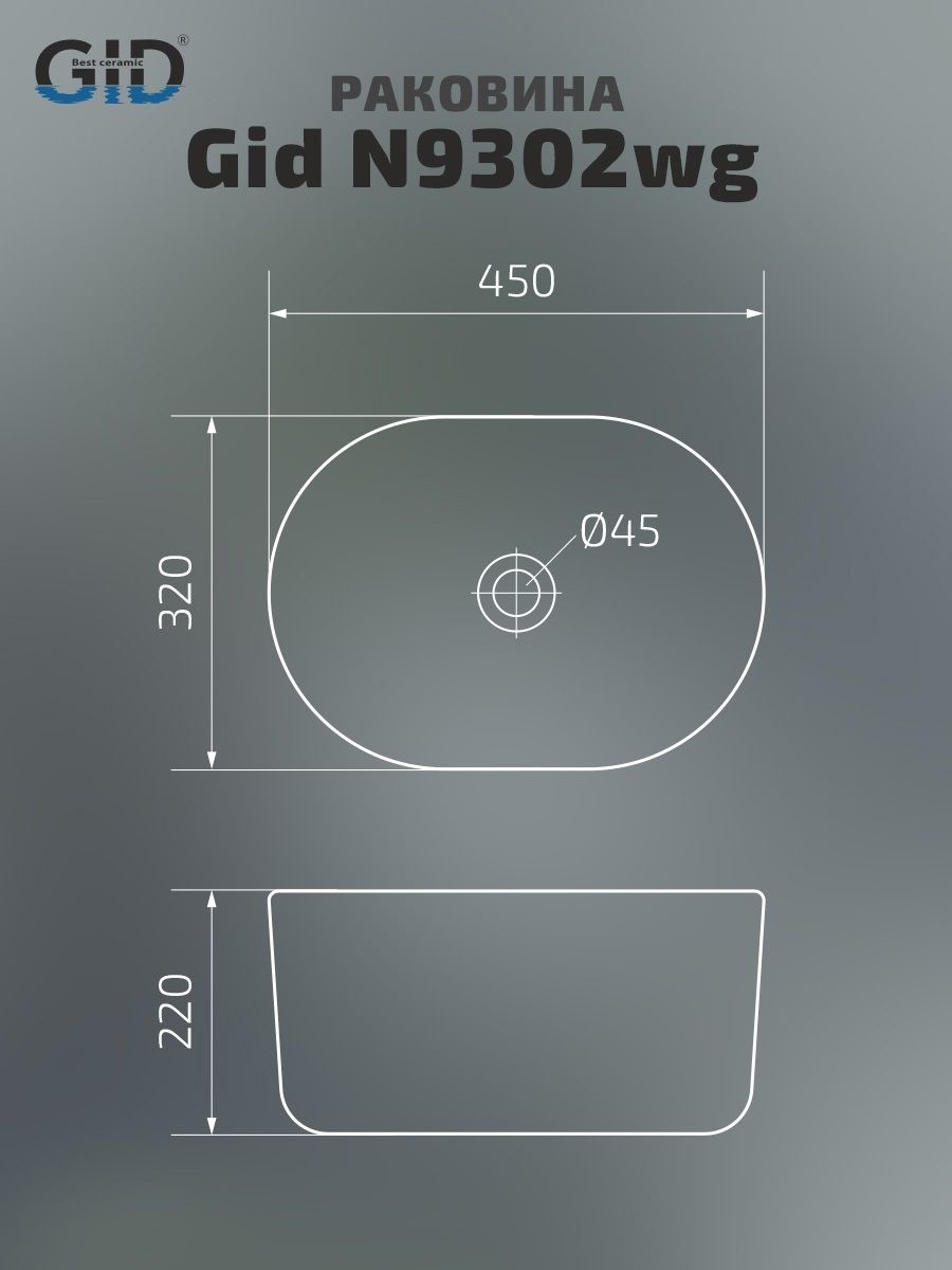 Раковина Gid N9302wg 51220 накладная белая матовая / белая графит 45x32x22 купить