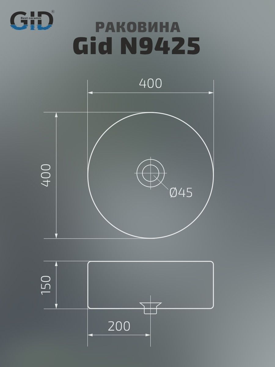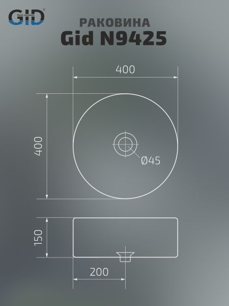 Раковина Gid N9425 51144 накладная белая 40x40x15 купить