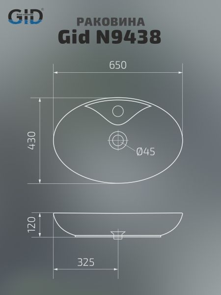 Раковина Gid N9438 51151 накладная белая 65x43x12 купить