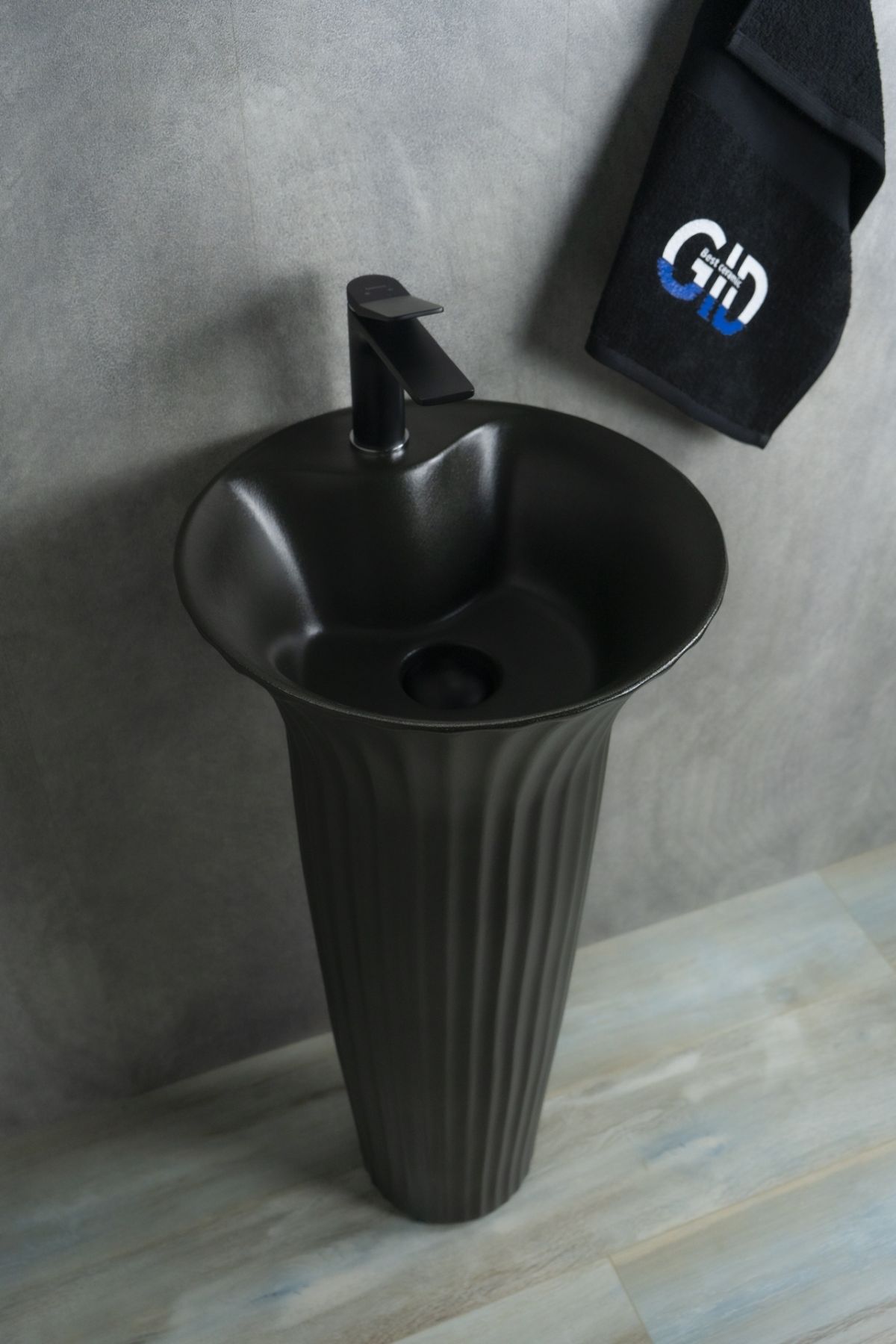 Autonomo — коллекция напольных раковин, созданных по европейским стандартам. Испанское качество гарантирует долговечность и надежность. Напольная раковина GiD Nb132bg выполнена из высококачественной мелкопористой керамики с неповторимым графитовым покрытием в черном цвете. Стильная тюльпанообразная форма обеспечивает удобство использования и добавляет современный акцент в интерьер ванной комнаты. Модель оснащена отверстием для смесителя, что облегчает процесс установки и позволяет подобрать смеситель, идеально сочетающийся с дизайном. Напольная установка гарантирует устойчивость и надежность, придавая ванной комнате завершенный и особенный вид.