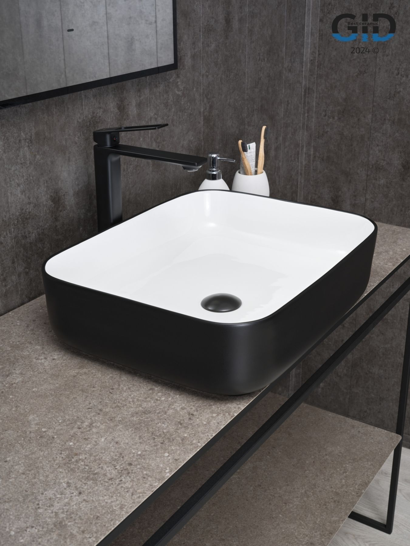 Раковина Gid Nc366 52205 накладная белая / черная 50x39x13