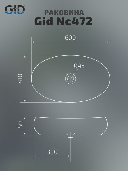 Раковина Gid Nc472 52222 накладная белая / золото 60x41x15 купить