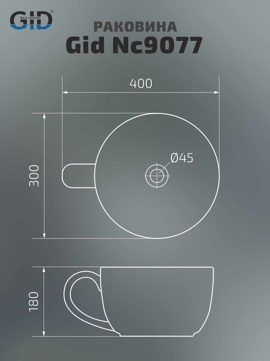 Раковина Gid Nc9077 52230 накладная черная глянцевая 40x30x18 купить