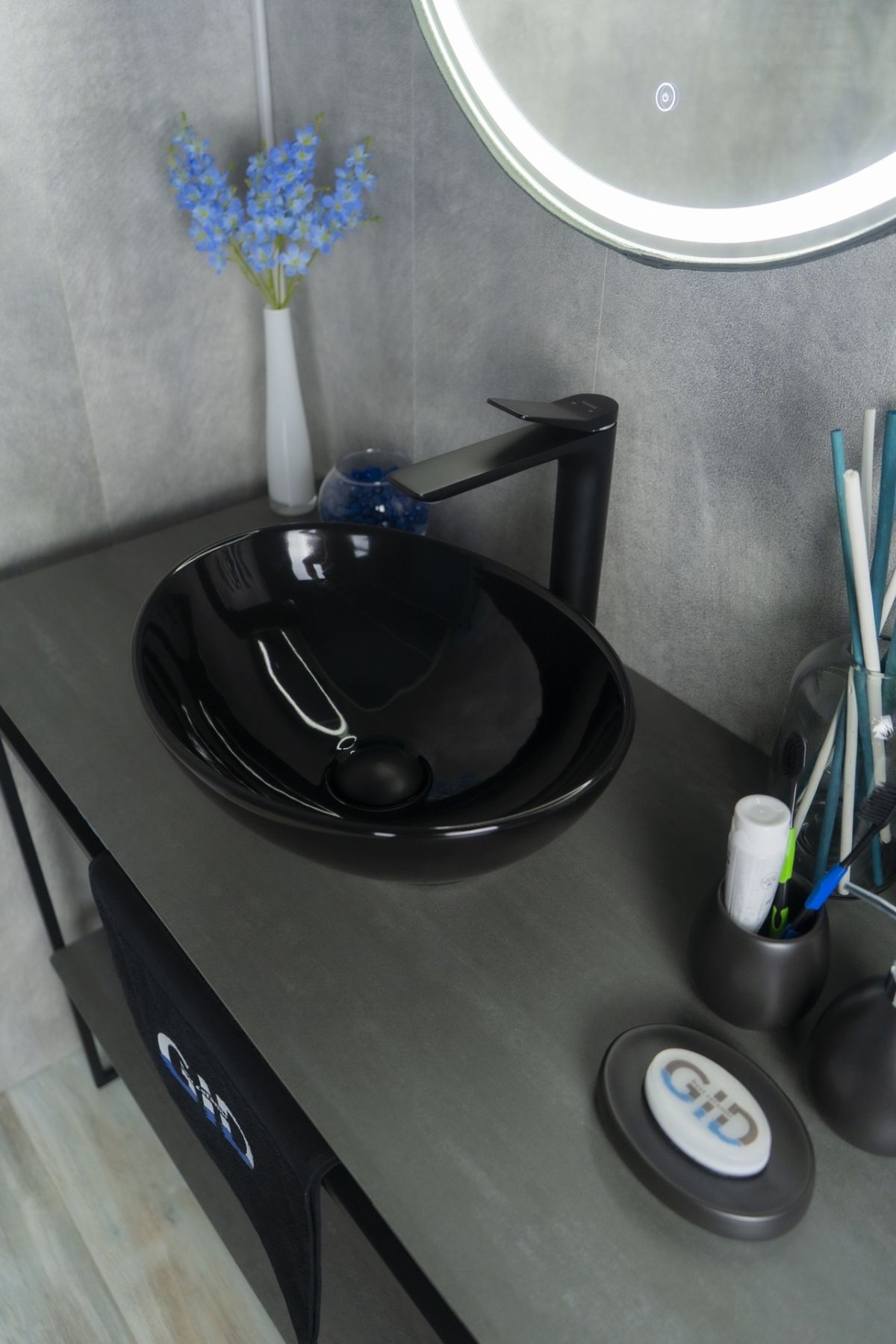 Серия Lago овальной формы — это испанское качество, соответствующее современным европейским требованиям. Стильная накладная раковина GiD Nc920 выполнена из высококачественной мелкопористой керамики с глянцевым черным покрытием, что придает ей современный и элегантный вид. Овальная форма добавляет гармонию и утонченность в интерьер ванной комнаты. Накладная конструкция позволяет легко установить раковину на столешницу, предоставляя дополнительное пространство. Она станет отличным выбором для тех, кто ценит стиль и функциональность в дизайне ванной.
