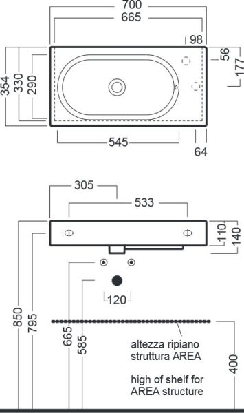 Раковина Hatria Area Y0W901 70x35 см купить