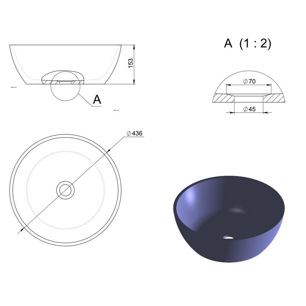 - диаметр: ø43,6 см;