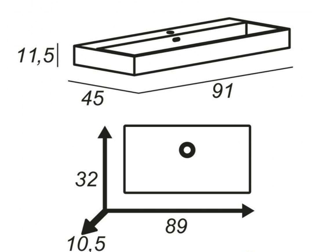 Раковина из искусственного мрамора91x45x11,5смБелая
