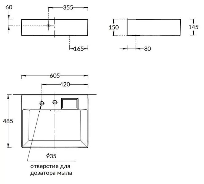 Раковина исполнена в современном геометричном дизайне, чистота которого усилена благодаря Beauty Drain — технологии невидимого слива, который смещён из центра чаши к её задней стенке. При этом отверстие перелива спрятано в небольшой бокс, закрытый керамической крышкой. Это делает наклонное дно чаши идеально ровным и упрощает процесс уборки. Данная модель содержит отверстие под смеситель, а также отверстие для установки встраиваемого дозатора для мыла. Раковина шириной 60 см используется только с тумбой LOGICA 60, монтаж без мебели не предусмотрен.