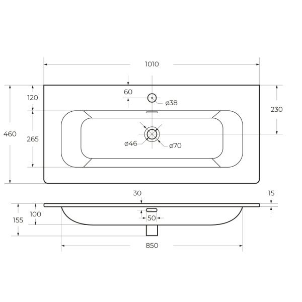 Раковина керамическая CEZARES 100 см, CZR-8073-100 белый