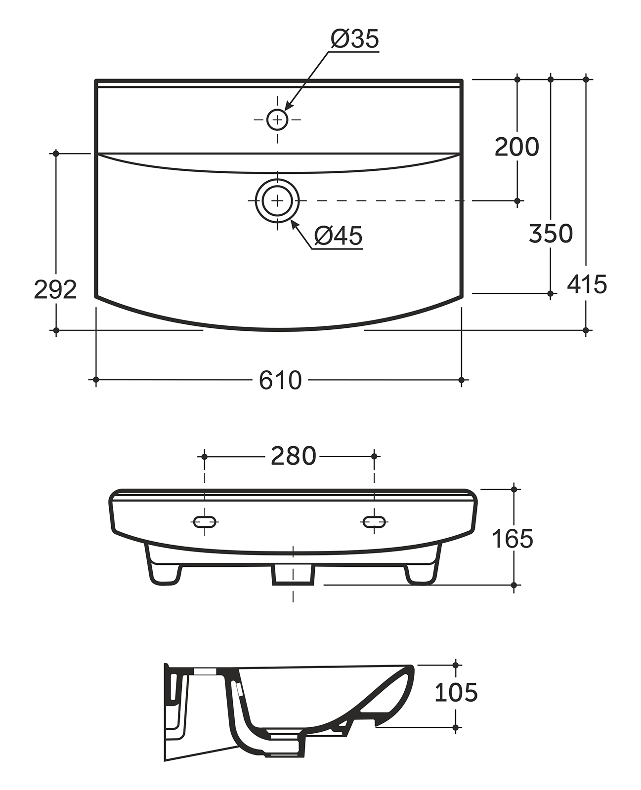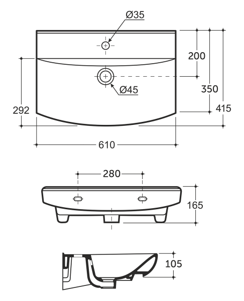 Тип: раковиныПо форме: полукруглыеРазмер, мм (ШxГxВ): 610x415x165Размер в упаковке, мм (ШxГxВ): 640x445x195Цвет: белыйВес, кг: 14.9Вес с упаковкой, кг: 16.2По монтажу: мебельнаяМатериал: фарфор