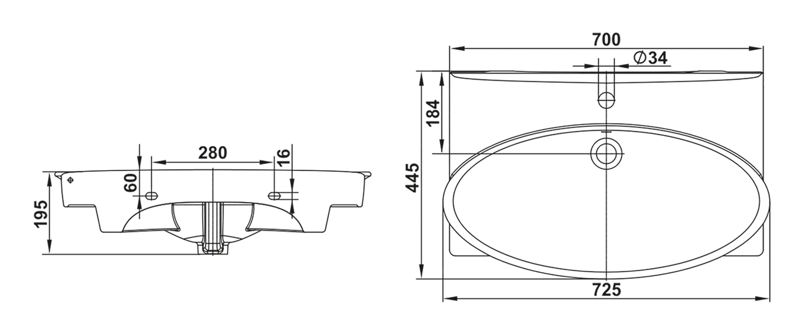 Тип: раковиныПо форме: полукруглыеРазмер, мм (ШxГxВ): 725x445x195Размер в упаковке, мм (ШxГxВ): 755x475x225Цвет: белыйВес, кг: 17.2Вес с упаковкой, кг: 19По монтажу: мебельнаяМатериал: фарфор