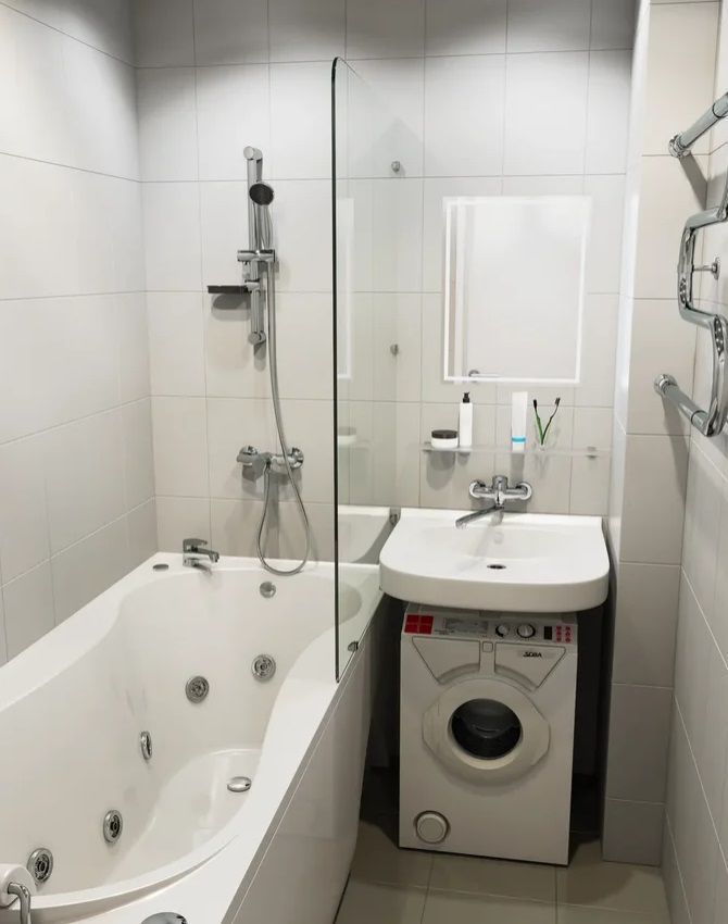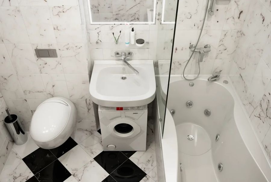 Раковина создана в соответствии с правилами установки стиральных машин под раковину, согласованными с Ростестом. Раковина Кувшинка поставляется в комплекте с необходимыми для монтажа элементами:2 кронштейна, метизы и сифон. Смеситель не входит в комплект поставки.