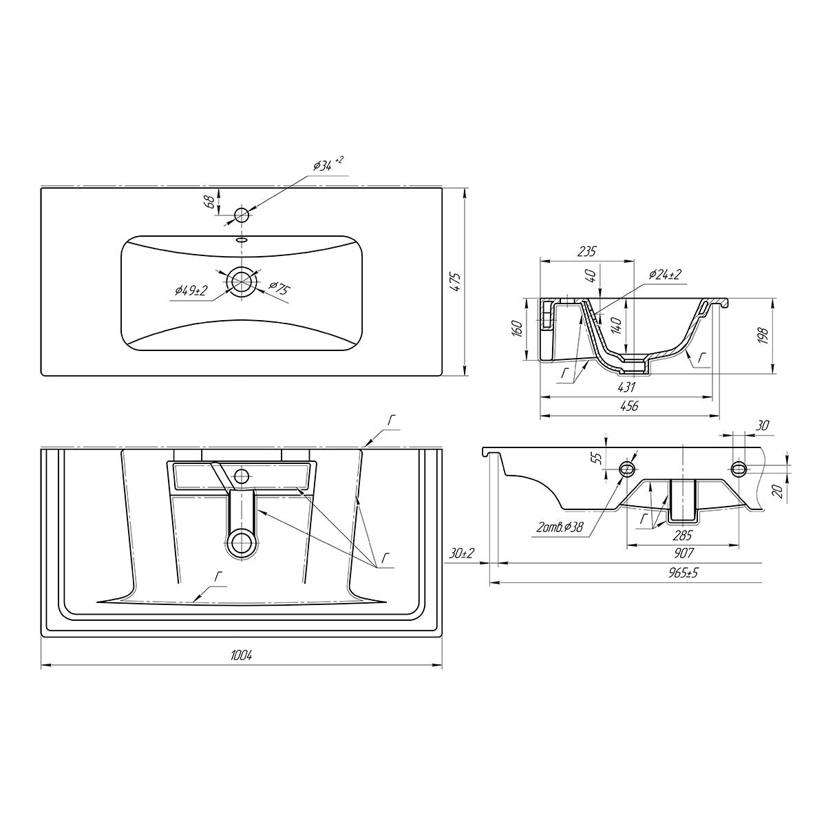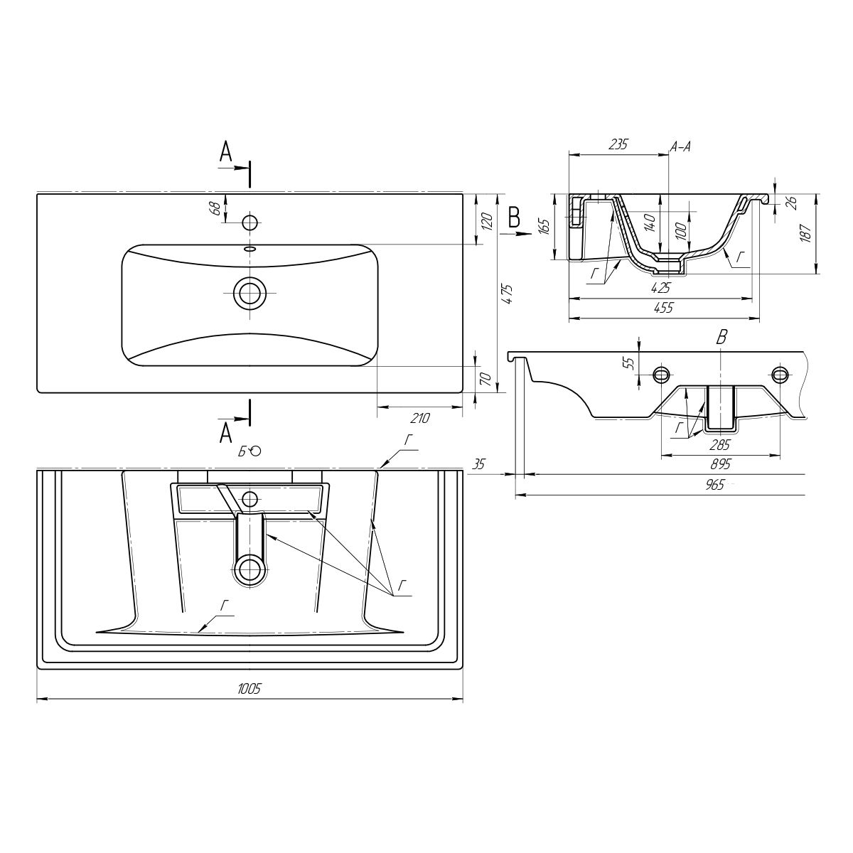 • Габариты (ШГВ): 1005х475х140 мм