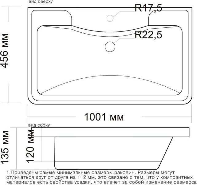 Размер, мм (ШxГxВ): 1001x456x135