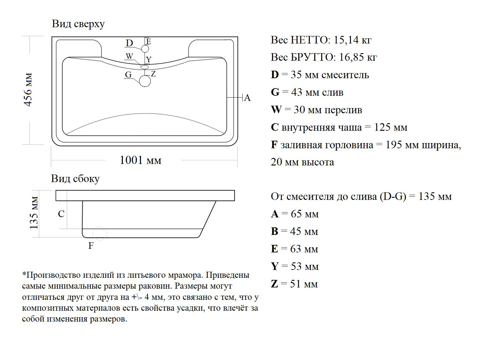 Материал: литьевой мрамор