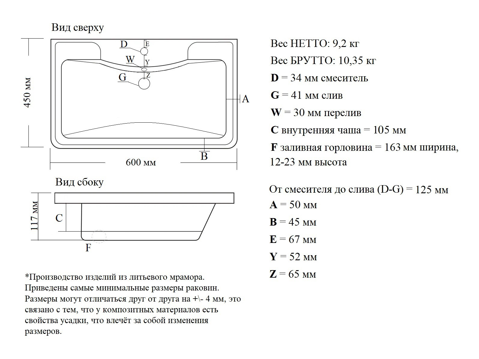 Материал: литьевой мрамор