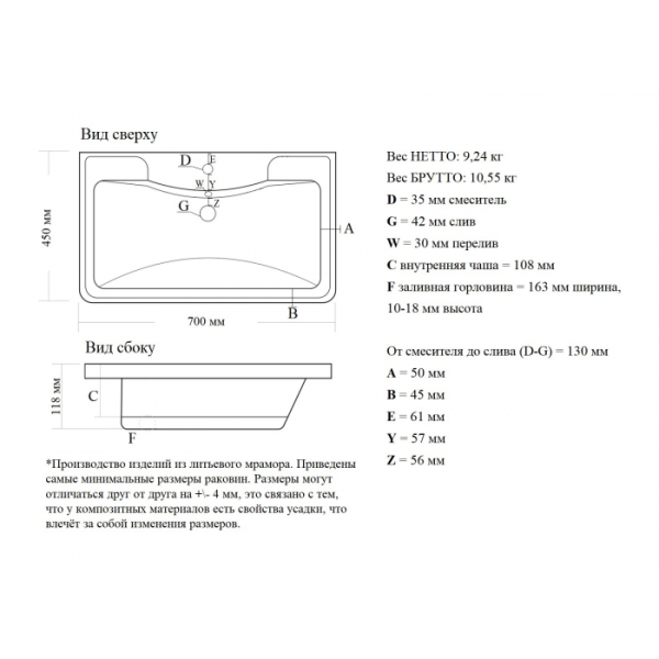 Размер, мм (ШxГxВ): 700x450x120