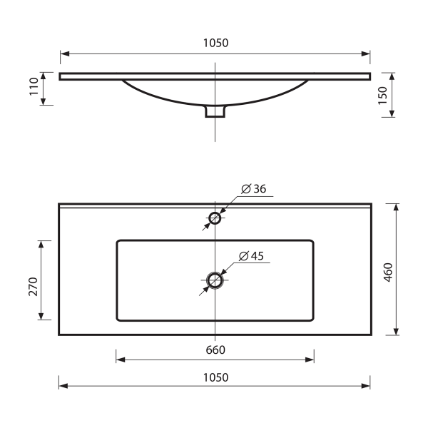 Тип: раковиныПо форме: прямоугольныеРазмер, мм (ШxГxВ): 1050x460x165Размер в упаковке, мм (ШxГxВ): 1080x490x195Цвет: белыйВес с упаковкой, кг: 18По монтажу: мебельнаяМатериал: искусственный камень