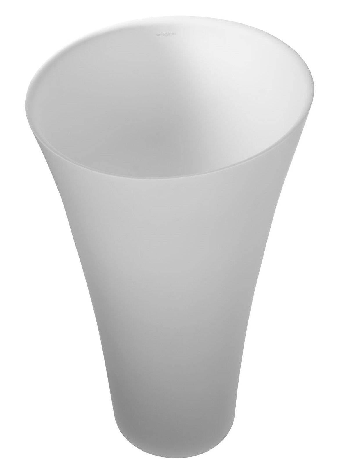 Раковина из искусственного камня для ванной комнаты. Похожие модели – Montebianco Pisa и Pisa Rubinetto.Модель напольного размещения. Безусловным практическим и эстетическим преимуществом является коническая форма. Раковина занимает мало места на полу, при этом за счет расширения к верху функционально очень удобна: вода не разбрызгивается и не выплескивается из объемной, чуть наклоненной к пользователю чаши. Благодаря большой видимой площади белоснежно-матовой, бархатистой поверхности великолепно выглядит в интерьере, является самостоятельной композицией. Популярна среди владельцев частных домов с просторными, светлыми помещениями ванных комнат.Высота раковины и небольшой наклон чаши удобны как для высоких людей, так и небольшого роста, в том числе детей. Крепление смесителя либо к стене, либо напольное, на ножке, подчеркивает современный дизайн и технологичность конструкции. Материал не впитывает влагу, не порист, непроницаем для плесени, бактерий и грибков.Отличия от моделей Pisa и Pisa Rubinetto – в размерах чаши (у Pisa Cono она более объемная), форме (две другие модели – прямые) и месте размещения смесителя (в Pisa Rubinetto он устанавливается на поверхность раковины).