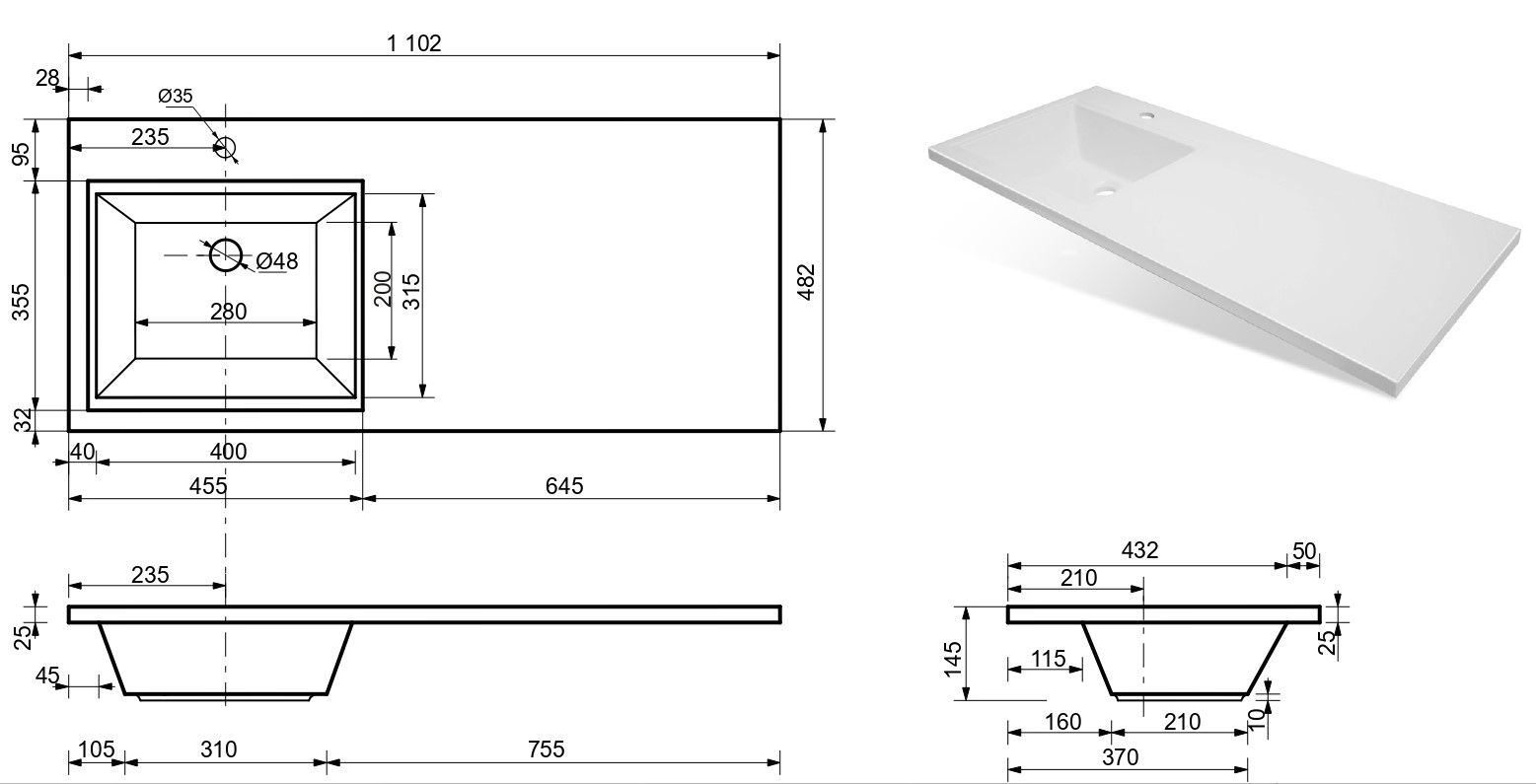 Раковина над стиральной машиной Эстет Dallas silk ФР-00014872 Л 110см белый