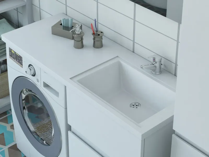 Изящнаая раковина гармонично впишется в любой интерьер ванной комнаты и позволит рационально использовать пространство над стиральной машиной.