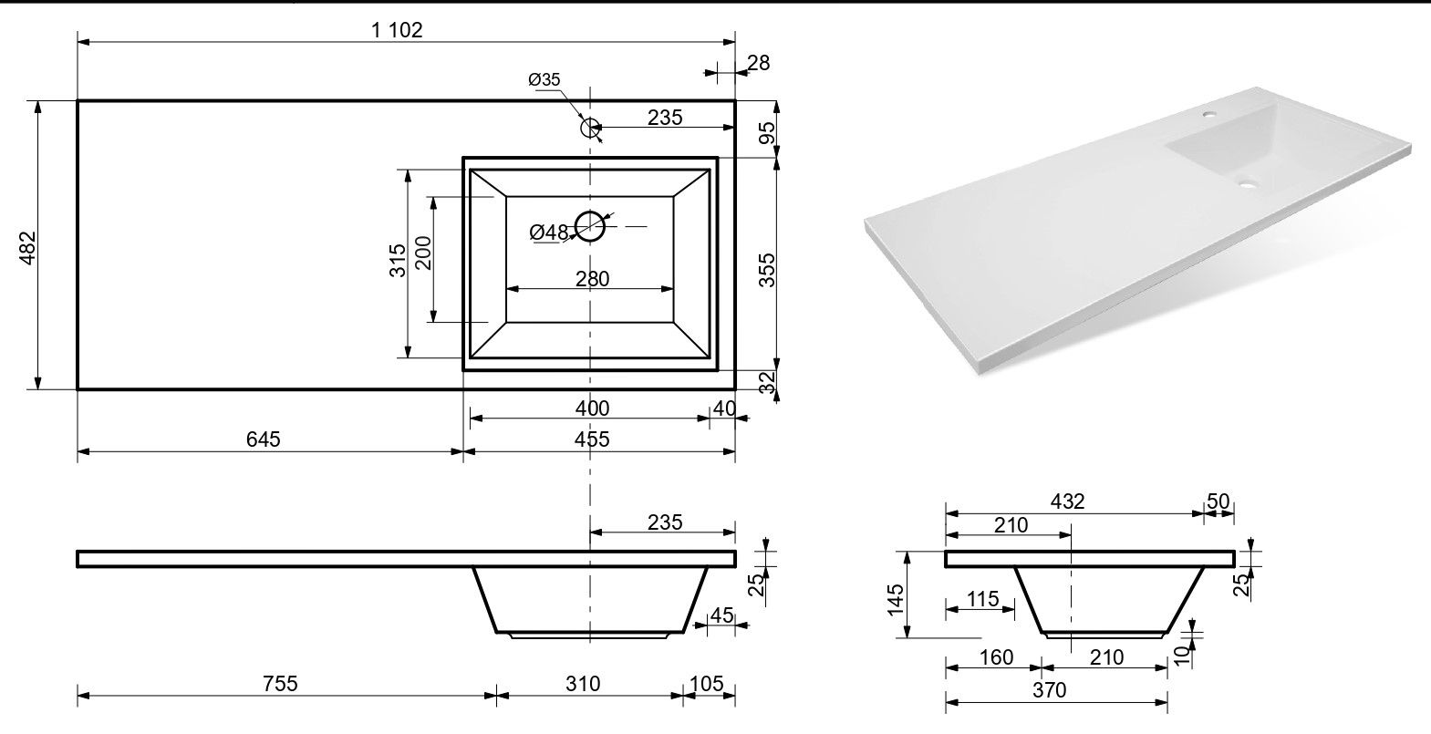 Отверстия под смеситель:1