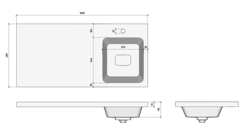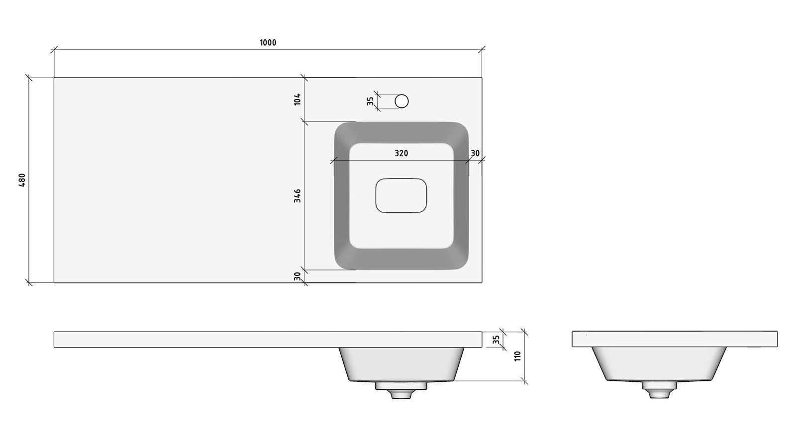 Одно отверстие под смеситель по центру чаши