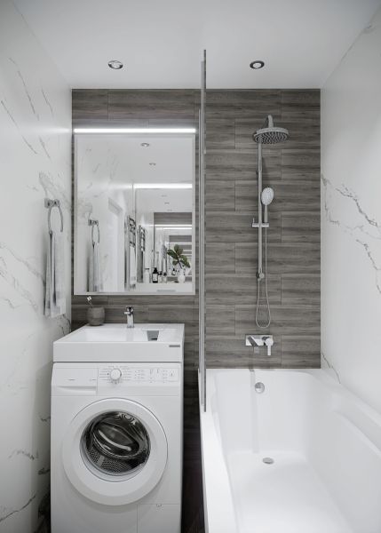 Экономит пространство в небольших помещениях и придает ванной комнате оригинальный облик.