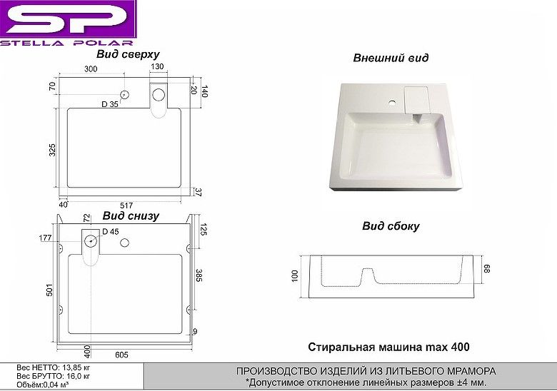 Раковина в ванную комнату для установки над стиральной машинкой. Крепится на кронштейны, которые входят в комплект поставки. Верхний слой высококачественного гелькоута образует декоративно-защитное покрытие.
