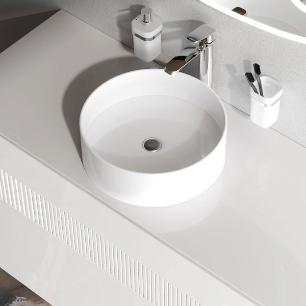 Раковина накладная Am.Pm Func M8FWCC40400WG 40 см белыйТрендовый дизайн раковины с ее идеально ровными поверхностями в сочетании с плавными линиями принадлежит авторству собственной дизайн-студии AM.PM в Германии. Лаконичная круглая форма раковины сделает ее центром притяжения любой ванной комнаты. Размер (Ш/Г/В): 400x400x125 мм. Цвет раковины – белый.