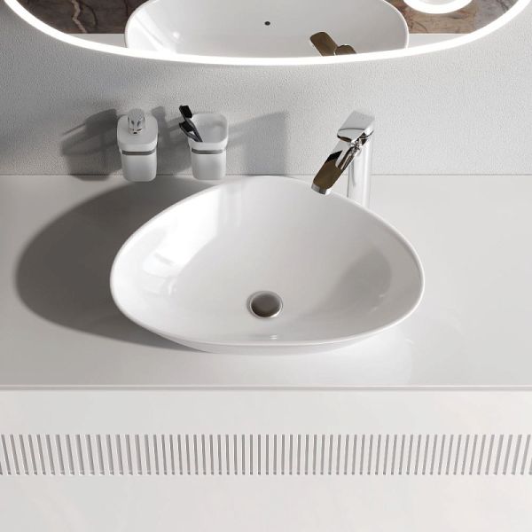 Раковина накладная Am.Pm Func M8FWCC50600WG 57 см белый Трендовый дизайн раковины с ее идеально ровными поверхностями в сочетании с плавными линиями принадлежит авторству собственной дизайн-студии AM.PM в Германии. Изысканная ассиметричная форма раковины станет ярким акцентом любой ванной комнаты. Размер (Ш/Г/В): 570x385x140 мм. Цвет раковины – белый.